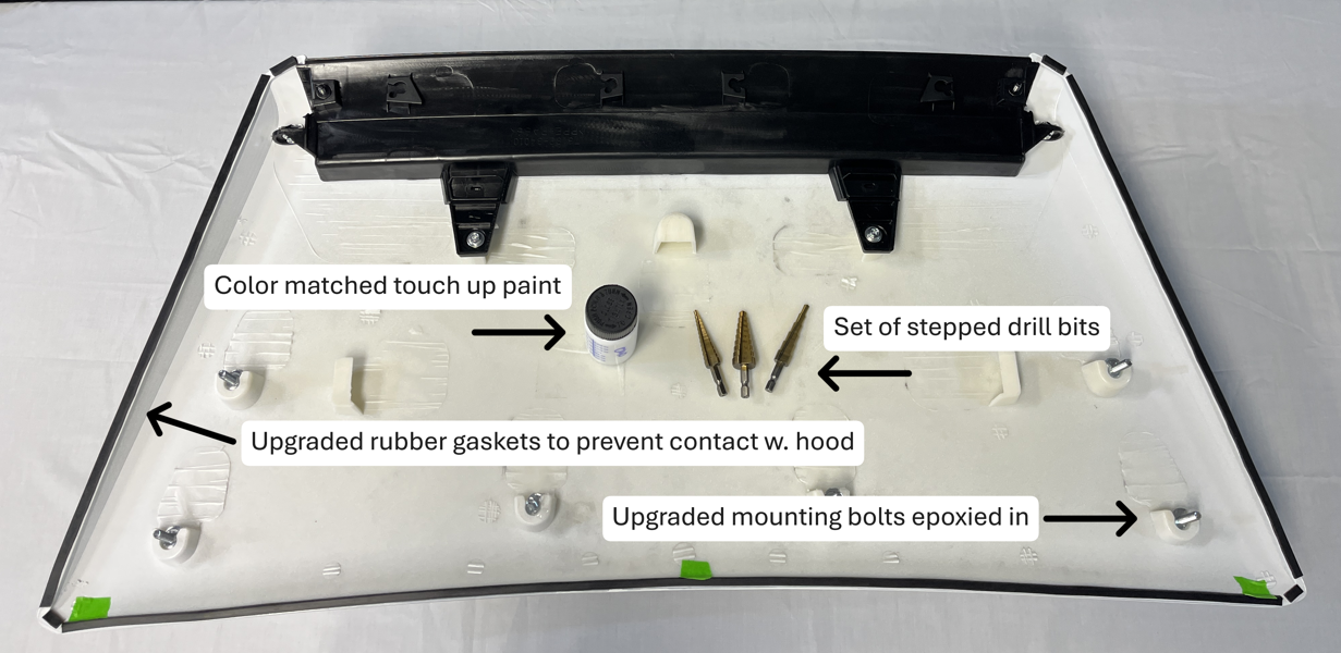 Custom painted with Cromax Army Green color code 6V7 and then 2K clear coated. Includes upgraded hardware and comes with everything needed to complete the installation. Everything is detailed in the video below. All hood scoop orders now include an installation kit($75 value)