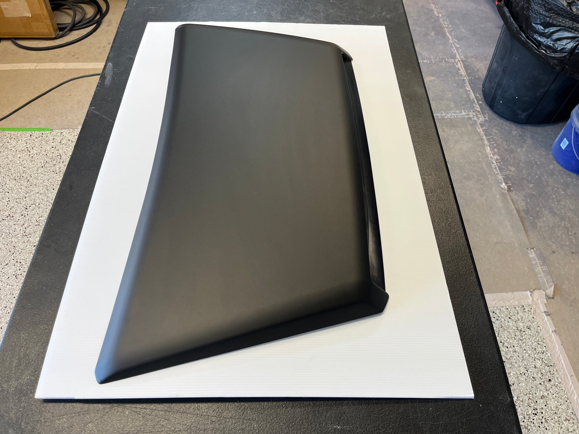 This is an option for people that plan to paint themselves or have the scoop wrapped. It will come with all the prep work done with sanding out the factory imperfections as best as possible. It will come typically already primed black and ready for paint. This will have the installation kit included. You will need to apply the rubber gaskets around the edges and remove the front piece for wrapping or painting and then reinstall when complete. The red strips go on each side. The single black strip goes along the back. The squares go on the rear corners. The (4) small strips are doubled up under the front corners - two on each side.